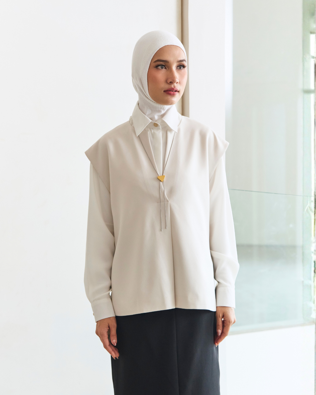 Kiona Vest Ivory & Clarista Skirt & Vanka Shirt BW as Inner (Dwihanda Look)