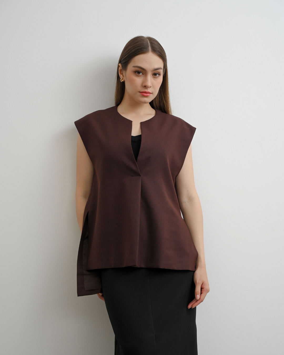 Kiona Vest Dark Brown & Izzy Trousers & Vanka Shirt Cream as Inner (Dwihanda Look)