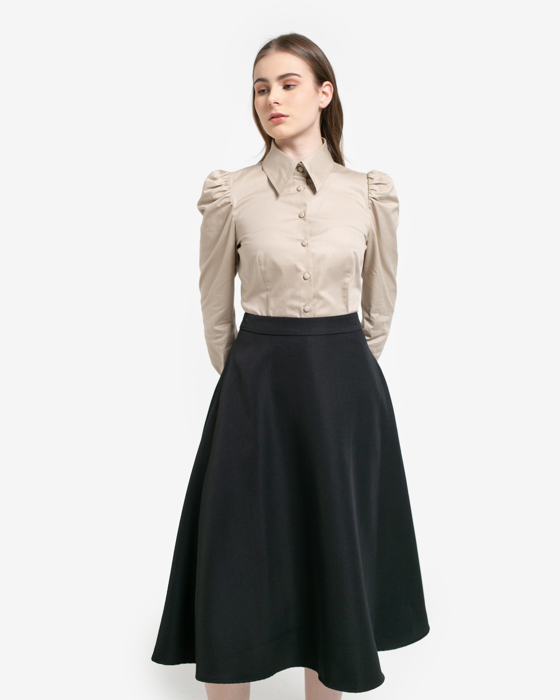 If you love classic shirt tailoring but want a bit more sophistication, then you are going to love this Maisie Shirt with puffed shoulder and long sleeves. Designed for a slightly slim fit, it has a straight point collar and covered tonal buttons that will add a lavish and dramatic feel to your everyday wear.